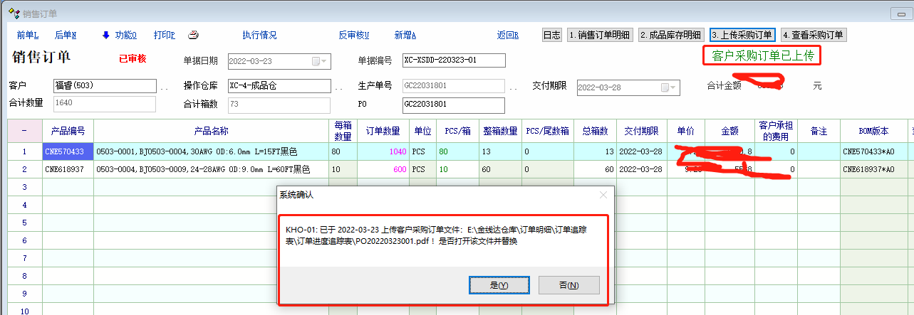 2022.03.26更新,添加检测已上传的文件,判断是否重新上传并替换的脚本,表头添加客户采购订单上传状态控件 int create_voucher() { gui_hide('sczt')//新建单据的时候隐藏客户采购订单上传状态控件 return 1; } int func_show() { if(have_role("0010")==1 || have_role("0009")==1)//限定有角色编号0010和0009权限(销售订单编辑和审核权限)的操作员才能看到这个控件 { gui_create_button("Panel_Func","Cgddsc_on5",985,7,95,22,"上传采购订单","call_csp.voucher.BA.cgddsc"); gui_create_button("Panel_Func","Cgddck",1085,7,95,22,"查看采购订单","call_csp.voucher.BA.cgddck"); //显示客户采购订单是否上传的状态 string v,v1; v = grid_get_v('MG_Item','voucher_id',1) v1 = "voucher."+v; if((get_obj_file(v1,'1')) == ''){ gui_create_label("ScrollBox_Base",'sczt',990,0,'客户采购订单待上传') gui_set_font_size("sczt",'16') gui_set_font_color('sczt',0x0000ff); msg('请联系制单人员上传客户采购订单!')} else{ gui_create_label("ScrollBox_Base",'sczt',990,0,'客户采购订单已上传') gui_set_font_size("sczt",'12') gui_set_font_color('sczt',32768);} }; return 1; }; int cgddsc() { string v,v1,v2,v3,v4,v5,v6,v7,v8,v9; v = grid_get_v('MG_Item','voucher_id',1) if(v==""){ msg("请先保存单据再上传!"); return 1; } v1 = "voucher."+v; v3 = "select file_id,org_file_name,create_date,create_user_id from app_fs_file where obj_id='" + v1 + "'";//根据相关文件的属性标识提取相关文件编号,原始文件来源信息,上传日期,上传的操作员编号 db_run_query(v3); v4 = db_res(0) v5 = db_res(1) v6 = fmt_date(db_res(2),'yyyy-mm-dd')//格式化上传日期 v7 = db_res(3) v8 = "select user_name from mup_user where user_id='" + db_res(3) + "'";//根据操作员编号提取操作员姓名 db_run_query(v8); v9 = db_res(0) if((get_obj_file(v1,'1')) == ''){ v2=select_file_to_open('选择文件','xls|*.xls|xlsx|*.xlsx|doc|*.doc|docx|*.docx|pdf|*.pdf');//创建选择文件窗口,可根据需要添加其他文件类型 if(v2 != ''){ upload_file(v1,'1',v2,'客户采购订单')//上传选择的文件 msg('ok,客户采购订单文件【'+v2+'】上传成功!'); gui_create_label("ScrollBox_Base",'sczt',990,0,'客户采购订单已上传') gui_set_font_size("sczt",'12') gui_set_font_color('sczt',32768);} if(v2 == ''){ msg('未选取客户采购订单文档,操作取消!'); gui_create_label("ScrollBox_Base",'sczt',990,0,'客户采购订单待上传') gui_set_font_size("sczt",'16') gui_set_font_color('sczt',0x0000ff);} return 1; } if((get_obj_file(v1,'1')) != ''){ if(confirm(v7+'/'+v9+': 已于 '+v6+' 上传客户采购订单文件:'+v5+' !是否打开该文件后删除上传记录并重新选择新的客户采购订单上传?')== '1'){ shell(get_obj_file(v1,'1'));//打开已上传的文件 erase_file_by_id(v4)//删除已上传的文件 msg('警告:已上传的文件【'+v5+'】已删除!') msg('若需要恢复已上传的文件,请重新选择已打开的原始文件上传') v2=select_file_to_open('选择文件','xls|*.xls|xlsx|*.xlsx|doc|*.doc|docx|*.docx|pdf|*.pdf');//选择要更新的文件 upload_file(v1,'1',v2,'客户采购订单')//上传选择的文件 gui_create_label("ScrollBox_Base",'sczt',990,0,'客户采购订单已上传') gui_set_font_size("sczt",'12') gui_set_font_color('sczt',32768); msg('ok,客户采购订单文件【'+v2+'】上传成功!'); }; }; return 1; }; int cgddck() { string v,v1; v = grid_get_v('MG_Item','voucher_id',1)//获取单据流水号 v1 = "voucher."+v;//生成对象标识 if((get_obj_file(v1,'1')) == '')//1为相关文件界面的文件类型编码,返回的文件地址为空时弹窗提醒 { msg('客户采购订单待上传!') } else { shell(get_obj_file(v1,'1'));//打开上传的文档 } return 1; }; int func_before_oper() { if(oper_type='ask_check')//在单据送审的时候检查是否有上传客户采购订单,若无则弹窗提醒 { int grid_rc,i; string v,v1; grid_rc= grid_find('MG_Item','res_name',''); v = grid_get_v('MG_Item','voucher_id',i) v1 = "voucher."+v; if((get_obj_file(v1,'1')) == ''){ msg('请上传客户采购订单后再送审单据')} }; //oper_type=save,check,check_r,finish,finish_r,delete,giveup,ask_check,ask_check_r; //can_oper=1; return 1; }; |