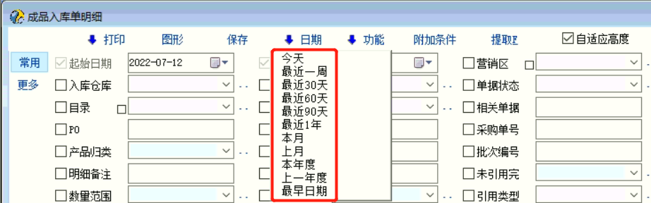 各单据列表经常要用来查询不同日期段的数据,每次查询都要手工设置日期段,官方暂时没有设置类似报表类的日期段选择控件,所以临时用脚本来添加,希望官方能更新这个日期段选择控件(或请哪位大神指导添加二级控件,这样就不用横排所有日期段控件了)。 F3打开单据列表,打开脚本定义添加脚本: int init_win() { call_str('call_prog.date period');//打开单据列表时执行date period脚本自动添加日期段控件 return 1; }; 把下列脚本另存为 date period 或把附件脚本下载后导入到系统 (每个单据列表都可以在脚本定义里添加 call_str('call_prog.date period');来调用) int JinTian() { gui_set_val("DateTimePicker_Voucher_Date_Beg",get_cur_date_std()); gui_set_val("DateTimePicker_Voucher_Date_End",get_cur_date_std()); gui_trigger_click("SpeedButton_Refresh"); return 1; }; int ZuoTian() { gui_set_val("DateTimePicker_Voucher_Date_Beg",get_last_date(get_cur_date_std())); gui_set_val("DateTimePicker_Voucher_Date_End",get_last_date(get_cur_date_std())); gui_trigger_click("SpeedButton_Refresh"); return 1; }; int Zjz() { gui_set_val("DateTimePicker_Voucher_Date_Beg",get_last_date(date_add(get_cur_date_std(),-6))); gui_set_val("DateTimePicker_Voucher_Date_End",get_cur_date_std()); gui_trigger_click("SpeedButton_Refresh"); return 1; }; int Zj30t() { gui_set_val("DateTimePicker_Voucher_Date_Beg",get_last_date(date_add(get_cur_date_std(),-29))); gui_set_val("DateTimePicker_Voucher_Date_End",get_cur_date_std()); gui_trigger_click("SpeedButton_Refresh"); return 1; }; int Zj60t() { gui_set_val("DateTimePicker_Voucher_Date_Beg",get_last_date(date_add(get_cur_date_std(),-59))); gui_set_val("DateTimePicker_Voucher_Date_End",get_cur_date_std()); gui_trigger_click("SpeedButton_Refresh"); return 1; }; int Zj90t() { gui_set_val("DateTimePicker_Voucher_Date_Beg",get_last_date(date_add(get_cur_date_std(),-89))); gui_set_val("DateTimePicker_Voucher_Date_End",get_cur_date_std()); gui_trigger_click("SpeedButton_Refresh"); return 1; }; int Zjn() { gui_set_val("DateTimePicker_Voucher_Date_Beg",get_last_date(date_add(get_cur_date_std(),-364))); gui_set_val("DateTimePicker_Voucher_Date_End",get_cur_date_std()); gui_trigger_click("SpeedButton_Refresh"); return 1; }; int BenYue() { string byc,bym, byc = get_cur_month()+'01' bym = get_cur_month()+get_month_days(get_cur_month()) gui_set_val("DateTimePicker_Voucher_Date_Beg",byc); gui_set_val("DateTimePicker_Voucher_Date_End",bym); gui_trigger_click("SpeedButton_Refresh"); return 1; }; int ShangYue() { num byc,bym, byc = get_cur_month()-1+'01' bym = get_cur_month()-1+get_month_days(get_cur_month()-1) gui_set_val("DateTimePicker_Voucher_Date_Beg",byc); gui_set_val("DateTimePicker_Voucher_Date_End",bym); gui_trigger_click("SpeedButton_Refresh"); return 1; }; int BenNian() { string bnc,bnm, bnc = get_cur_year()+'0101' bnm = get_cur_year()+'1231' gui_set_val("DateTimePicker_Voucher_Date_Beg",bnc); gui_set_val("DateTimePicker_Voucher_Date_End",bnm); gui_trigger_click("SpeedButton_Refresh"); return 1; }; int ShangNian() { num snc,snm, snc = get_cur_year()-1+'0101' snm = get_cur_year()-1+'1231' gui_set_val("DateTimePicker_Voucher_Date_Beg",snc); gui_set_val("DateTimePicker_Voucher_Date_End",snm); gui_trigger_click("SpeedButton_Refresh"); return 1; }; int ZuiZao() { gui_set_val("DateTimePicker_Voucher_Date_Beg",19000101); gui_set_val("DateTimePicker_Voucher_Date_End",get_cur_date_std()); gui_trigger_click("SpeedButton_Refresh"); return 1; }; int main() { gui_create_speedbutton("Panel_Func","JinTian",760,0,25,30,"今天","call_prog.date period.JinTian"); gui_create_speedbutton("Panel_Func","ZuoTian",790,0,25,30,"昨天","call_prog.date period.ZuoTian"); gui_create_speedbutton("Panel_Func","Zjz",820,0,50,30,"最近一周","call_prog.date period.Zjz"); gui_create_speedbutton("Panel_Func","Zj30t",875,0,50,30,"最近30天","call_prog.date period.Zj30t"); gui_create_speedbutton("Panel_Func","Zj60t",930,0,50,30,"最近60天","call_prog.date period.Zj60t"); gui_create_speedbutton("Panel_Func","Zj90t",985,0,50,30,"最近90天","call_prog.date period.Zj90t"); gui_create_speedbutton("Panel_Func","Zjn",1040,0,50,30,"最近一年","call_prog.date period.Zjn"); gui_create_speedbutton("Panel_Func","BenYue",1095,0,25,30,"本月","call_prog.date period.BenYue"); gui_create_speedbutton("Panel_Func","ShangYue",1125,0,25,30,"上月","call_prog.date period.ShangYue"); gui_create_speedbutton("Panel_Func","BenNian",1155,0,40,30,"本年度","call_prog.date period.BenNian"); gui_create_speedbutton("Panel_Func","ShangNian",1200,0,50,30,"上一年度","call_prog.date period.ShangNian"); gui_create_speedbutton("Panel_Func","ZuiZao",1255,0,50,30,"最早日期","call_prog.date period.ZuiZao"); return 1; }; |