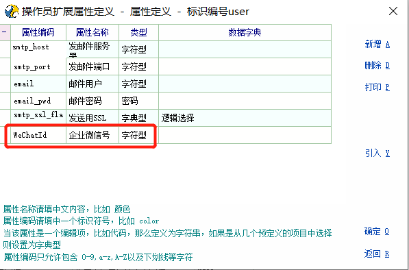 为了防止登录密码泄露被他人盗用登录电脑客户端,特申请了企业微信账号后,在主窗口脚本添加了企业微信收到登录提醒脚本 若官方能增加操作员绑定的微信登录提醒是最好,毕竟很多用户没有申请企业微信。 int main() { string uid,uid_name,WeChatId,Host_ip,Host_name,dlrq,dlsk; uid = get_user_id(); uid_name = get_user_name(): WeChatId=get_user_attr('WeChatId');//在操作员功能菜单下添加操作员扩展属性定义:WeChatId,操作员编辑界面的扩展属性定义窗口录入企业微信账号 Host_ip = get_ip(); Host_name = get_host_name(); dlrq = get_cur_date(); dlsk = get_cur_time(); if(WeChatId != '')//没有设置企业微信号的操作员不发送登录提醒,避免登陆后报错 { send_qywx_msg(WeChatId,'亲爱的:【'+uid+'】,【'+uid_name+'】用户,您的账号于【'+dlrq+'】【'+dlsk+'】在IP【'+Host_ip+'】电脑名【'+Host_name+'】登录,若非本人登录,请尽快登录系统修改密码!'); }; else { msg('您还没有加入企业微信或关注企业微信的公众号,无法给您发送登录信息提醒,若有需要,请联系管理员!'); }; return 1; }; |