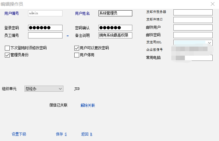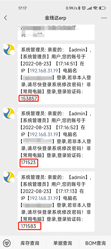 这个是在微信接收登录提醒的基础上再加一道保险,在非常用电脑(操作员专用电脑)上登录系统后会在登录提醒信息里面加上一组随机验证码,没有输入正确的随机验证码,则退出登录 1. 在操作员扩展属性定义添加 cydn :常用电脑 ,在脚本里面调用这里输入的常用电脑名称 2. 在主窗口脚本(下一版本应该是在 app_ready 脚本里面添加,希望老师能添加退出小秘书模式的函数)添加脚本: string sql,uid,uid_name,WeChatId,Host_ip,Ip,Host_name,dlrq,dlsk,CyDn,SuiJiShu,Dlxx; uid = get_user_id(); uid_name = get_user_name(): WeChatId=get_user_attr('WeChatId'); CyDn=get_user_attr('cydn'); Host_ip = get_ip(); Host_name = get_host_name(); dlrq = get_cur_date(); dlsk = get_cur_time(); SuiJiShu = rand() Dlxx = '亲爱的:【'+uid+'】,【'+uid_name+'】用户,您的账号于【'+dlrq+'】【'+dlsk+'】在IP【'+Host_ip+'】电脑名【'+Host_name+'】登录,若非本人登录,请尽快登录系统修改密码!' if(WeChatId != ''){ if(Host_name == CyDn){ send_qywx_msg(WeChatId,Dlxx); }if(Host_name != CyDn && CyDn == ''){ send_qywx_msg(WeChatId,Dlxx+'【您还没登记常用电脑,请联系管理员,以便在其他电脑登录时进行二次验证,确保异地登录安全!】'); }if(Host_name != CyDn && CyDn != ''){ send_qywx_msg(WeChatId,Dlxx+'非【常用电脑】登录,登录验证码:'+SuiJiShu); inp_clear(); inp_para_set_title('请输入微信验证码') inp_def_string('mnum','微信验证码:'); inp_para() num inp_num; inp_num=inp_get_val('mnum') if(inp_num == SuiJiShu){ msg('验证通过,请妥善保管账号密码,谨防被盗用!'); }else{ msg('验证码错误,请重新登录!'); gui_trigger_click('N_Restart'); };}; }else{ msg('您还没有加入企业微信或关注企业微信的公众号,无法给您发送登录信息提醒,若有需要,请联系管理员!');}; |