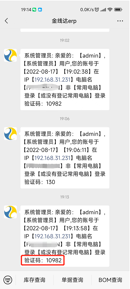 最新版本更新了rand函数,测试了10次,每次都是随机产生不同的5位数验证码,不会再像之前每次异地登录收到的都是相同的验证码了!随机码+登录6位登录时刻产生的6位数验证码就更安全了,每次的登录验证码怎么都不会被盲猜出来了。完全确保了异地登录安全。如果有必要,可以设置所有账户(或者拥有相关角色权限的账户)每次登录都要输入登录验证码!这样即使密码泄露也能确保登录安全。 |