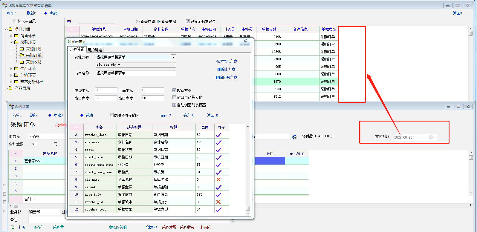在虚拟库存_采购环节_查看单据_显示定制增加  交付期限 可以直观的看的每个供应商的承诺的发货时间, 以便我们催货`````在oit的进销存环节我觉得比较实用```希望可以添加这个功能,