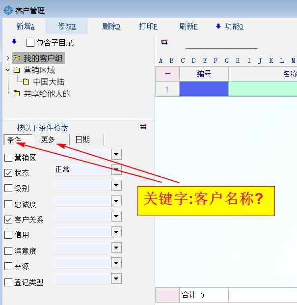 如图,在客户列表的左下角,默认的检索条件,竟然没有客户名称? 而且 "更多" 选项里也没有。这个更多选项好像没有包括所有客户属性,如果我要通过某属性(例如:名称) 检索,必须用脚本吗?