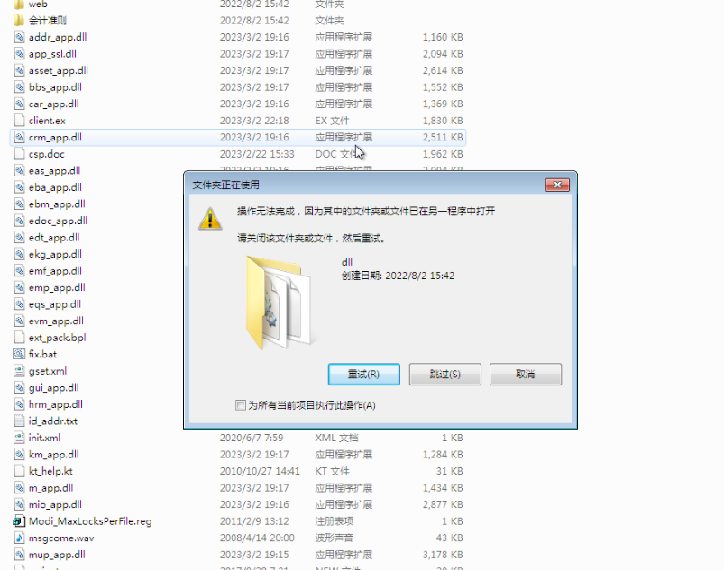 求助_请教: 升级: 覆盖dll目录总是提示"其中的文件或文件夹已在另一程序中打开,无法进行._使用经验