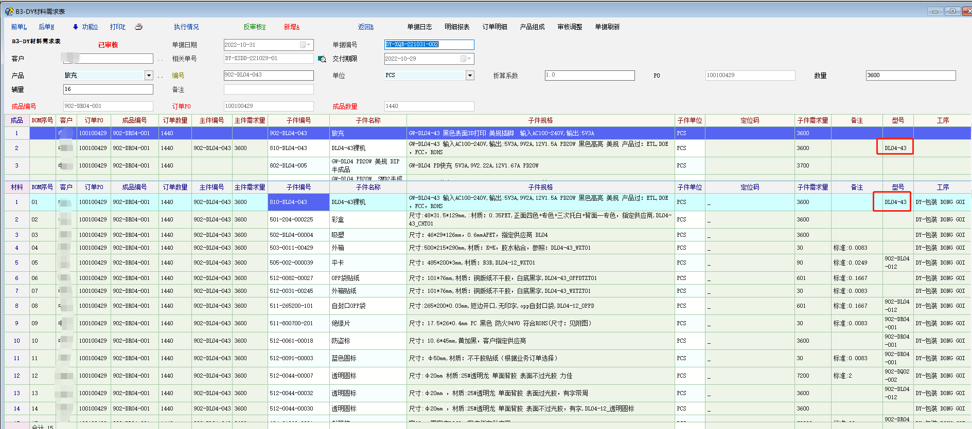 这个要支持一下,正常情况显示物料信息的地方都应该把型号(起码是可选)显示出来。