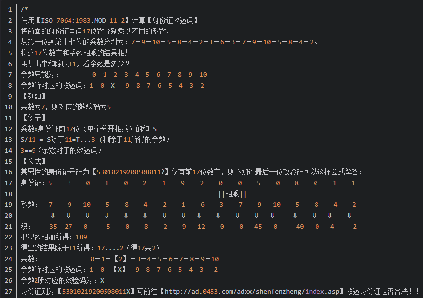 补充【身份证号码不等于18位数】的检测脚本 int main() { dbg_clear() int i,j,count; string paperid,ida,idb,idjs,xym,sfzws,id18; num ida,idb,ids,idjs; paperid = gui_get_val("Edit_Paper_Id"); if(strlen(paperid) == 18) { id18 = str_get_sub(paperid,17,1) str_lst_to_db('7,9,10,5,8,4,2,1,6,3,7,9,10,5,8,4,2') count = db_row_count() for(i=0;i<count;i++); { db_go_row(i) idb = db_res(0); ida=str_get_sub(str_get_sub(paperid,i,1),0,1) idjs = ida*idb db_add_field('校验系数') db_add_field('身份证号码分解') db_add_field('校验结果') db_set_value_ext('校验系数',idb) db_set_value_ext('身份证号码分解',ida) db_set_value_ext('校验结果',idjs) db_set_field_sum_flag('校验结果') }; ids = db_get_sum('校验结果') str_lst_to_db(str_replace(ids/11,".",",")) db_go_head(); idjs = ids - db_res(0)*11 str_lst_to_db('1,0,X,9,8,7,6,5,4,3,2') count = db_row_count() for(j=0;j<count;j++); { db_go_row(j) db_add_field('尾数') db_set_value_ext('尾数',j) xym = db_res_ext('尾数') db_add_field('校验码') db_set_value_ext('校验码',db_res(0)) if(idjs == xym) { sfzws = db_cell('校验码',j) }; }; if(sfzws != id18) { msg('身份证号码有效性验证未通过!当前输入的身份证尾号【'+id18+'】正确的尾号【'+sfzws+'】请重新输入身份证号码!') gui_set_val("Edit_Paper_Id",'') gui_focus("Edit_Paper_Id") return 0; }; }; //身份证号码小余18位数检测 if(gui_get_focus_obj() != "Edit_Paper_Id" && strlen(paperid) < 18) { msg('请输入完整的18位数身份证号码,目前已输入【'+strlen(paperid)+'】位') gui_set_val("Edit_Paper_Id",'') gui_focus("Edit_Paper_Id") }; //身份证号码大余18位数检测 if(gui_get_focus_obj() != "Edit_Paper_Id" && strlen(paperid) > 18) { msg('请输入18位数身份证号码,目前已输入【'+strlen(paperid)+'】位') gui_set_val("Edit_Paper_Id",'') gui_focus("Edit_Paper_Id") }; return 1; } |
