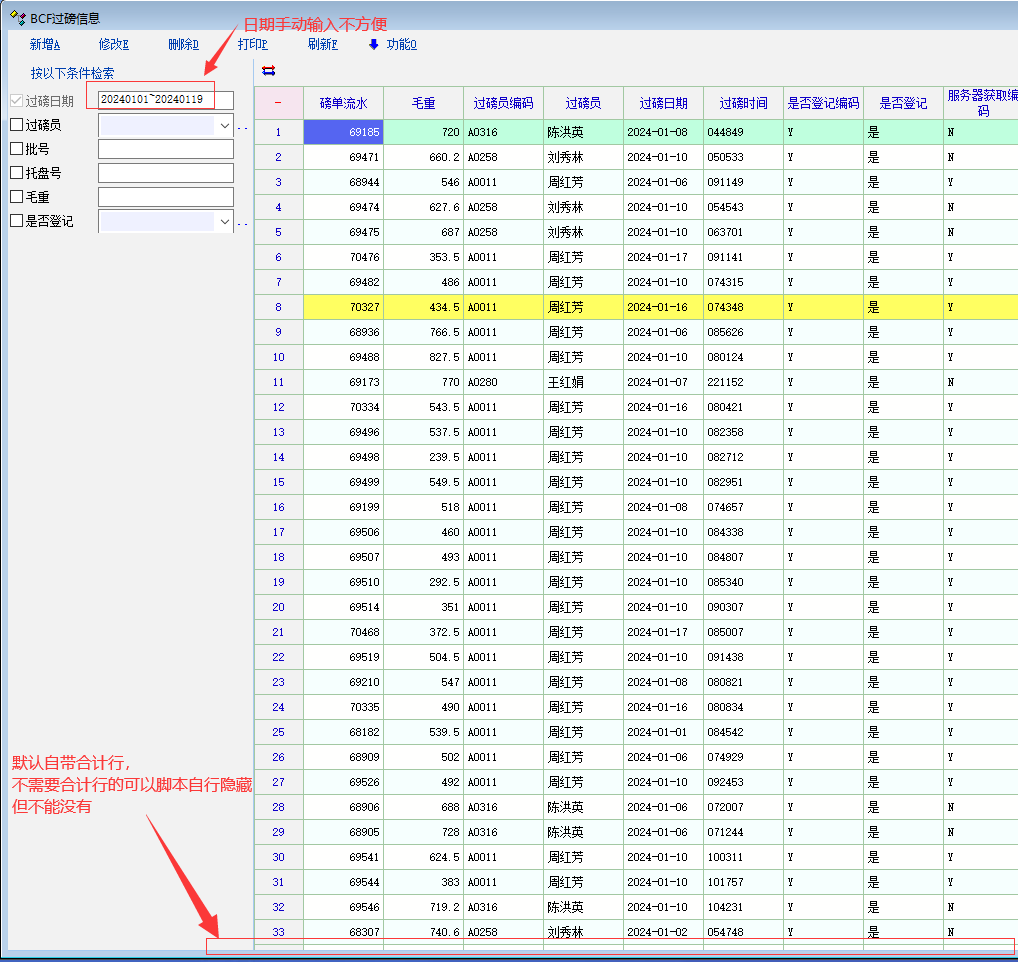 1、[mchecked|beg:monbeg|end:today]这类日期检索条件,建议还是将开始和结束分别用下拉日期控件,目前这方式不是很方便一不小时就容易录错。