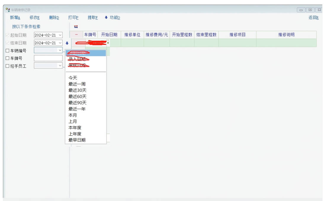 车辆维修记录日期右添加箭头去快选择最近日期,如下图