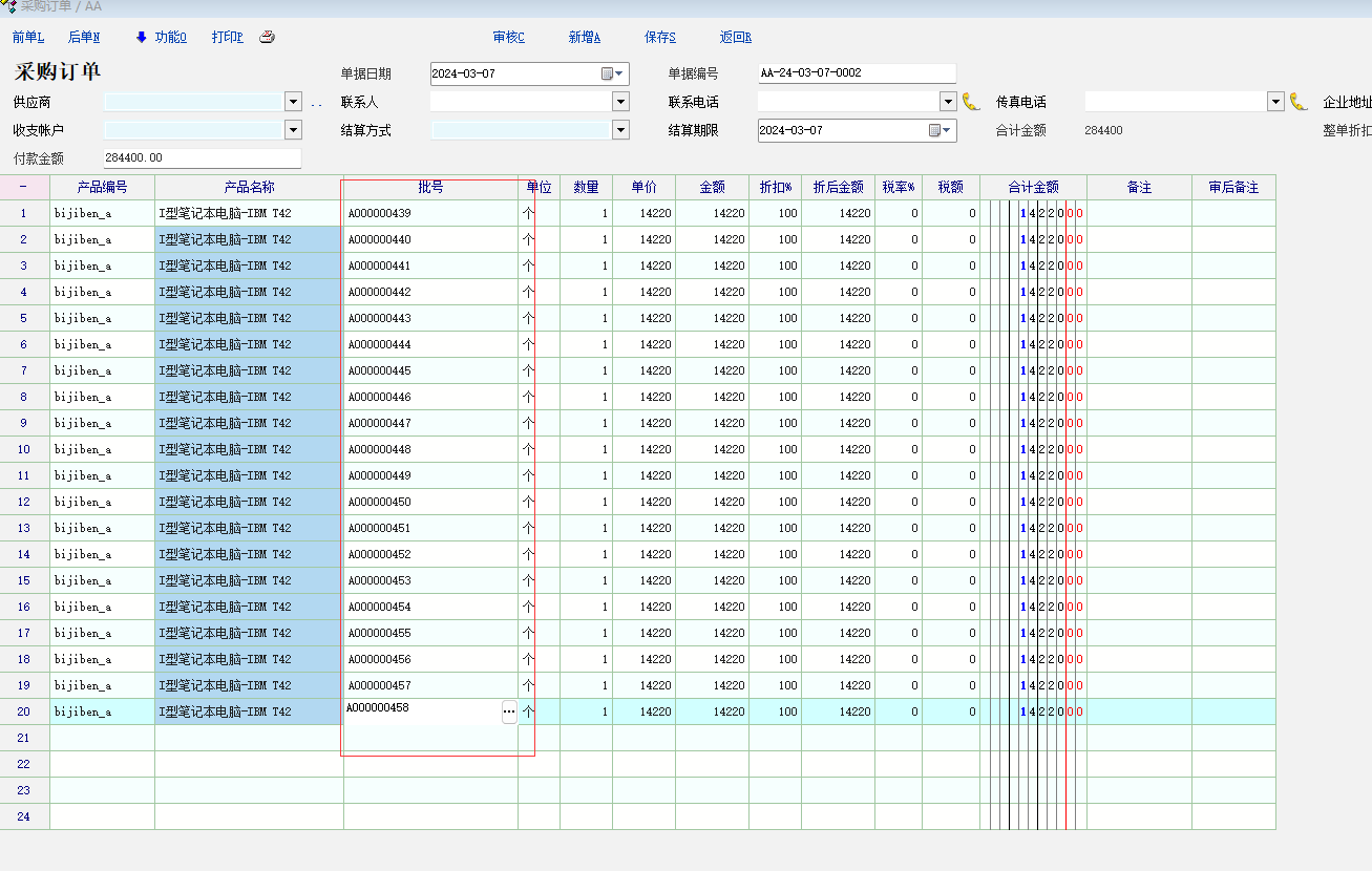 批次编号应该只能用于一批或一个物品数量的记录吧!单据里一个物品数量有50个怎么记录这50个SN码,