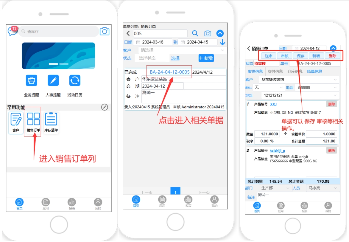 4.销售订单列表和单据- 暂时只支持 保存修改审核等,暂时不支持新增。