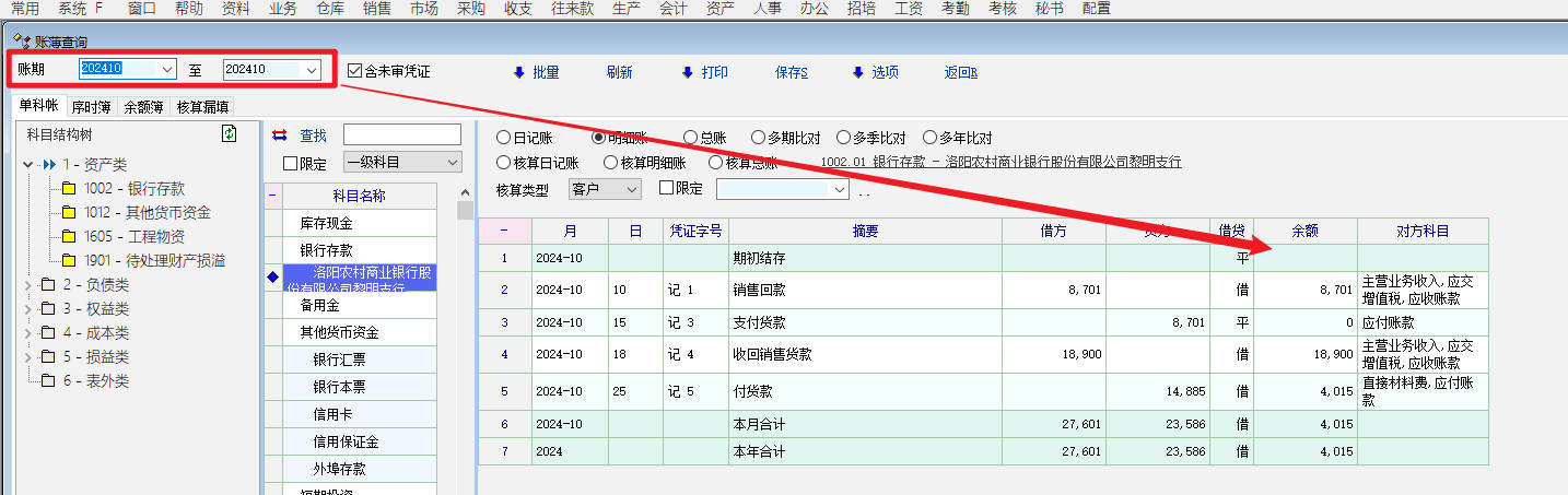 账期如果选择202410-202410,期初余额为0,最终余额与实际不符。