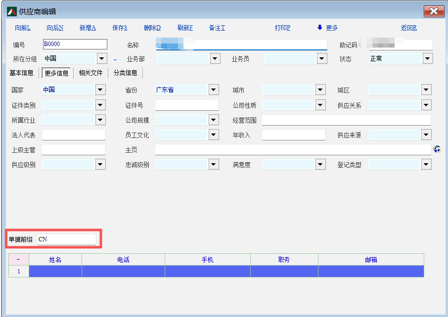 客户要求国内和国外的采购订单能有不同的前缀区分且3位数的后缀流水号能自动续接 思路:国内外的不同供应商放在不同的供应商分组里面 新建下面的这段脚本: int 采购订单编号自动生成() { string sql,v_fz,v_maxid,v_maxno,m_ny,m_qz,m_xh,v_id; num m_xh,m_dz; m_dz = '1' m_ny = get_cur_month() v_id = grid_get_v("MG_Item","voucher_id",1) db_run("select service_id from sup where Sup_id = '" + gui_get_val("ComboBox_Ext_Sup_Id") + "'"); //获取供应商分组编号 v_fz = db_res(0) if(v_fz == '001' && v_id < 1) //单据没有保存记录的时候执行 { db_run("select MAX(voucher_id) from ebs_v where voucher_type = 'AA' and voucher_no like 'CN"+m_ny+"%'") v_maxid = db_res(0) db_run("select voucher_no from ebs_v where voucher_id = '"+v_maxid+"'") v_maxno = db_res(0) m_qz = str_get_sub(v_maxno,0,2) m_xh = str_get_sub(v_maxno,8,3) m_xh = fmt_int(str_add_as_num(m_dz,m_xh),"%03d") gui_set_val("Edit_Voucher_No",'CN'+m_ny+m_xh) } if(v_fz == '002' && v_id < 1)//单据没有保存记录的时候执行 { db_run("select MAX(voucher_id) from ebs_v where voucher_type = 'AA' and voucher_no like 'VN"+m_ny+"%'") v_maxid = db_res(0) db_run("select voucher_no from ebs_v where voucher_id = '"+v_maxid+"'") v_maxno = db_res(0) m_qz = str_get_sub(v_maxno,0,2) m_xh = str_get_sub(v_maxno,8,3) m_xh = fmt_int(str_add_as_num(m_dz,m_xh),"%03d") gui_set_val("Edit_Voucher_No",'VN'+m_ny+m_xh) }; if(v_fz == '001' && v_id > 0)//单据有保存记录后执行 { db_run("select MAX(voucher_id) from ebs_v where voucher_type = 'AA' and voucher_no like 'CN"+m_ny+"%' and voucher_id < '" + v_id + "'") v_maxid = db_res(0) db_run("select voucher_no from ebs_v where voucher_id = '"+v_maxid+"'") v_maxno = db_res(0) m_qz = str_get_sub(v_maxno,0,2) m_xh = str_get_sub(v_maxno,8,3) m_xh = fmt_int(str_add_as_num(m_dz,m_xh),"%03d") gui_set_val("Edit_Voucher_No",'CN'+m_ny+m_xh) } if(v_fz == '002' && v_id > 0)//单据有保存记录后执行 { db_run("select MAX(voucher_id) from ebs_v where voucher_type = 'AA' and voucher_no like 'VN"+m_ny+"%' and voucher_id < '" + v_id + "'") v_maxid = db_res(0) db_run("select voucher_no from ebs_v where voucher_id = '"+v_maxid+"'") v_maxno = db_res(0) m_qz = str_get_sub(v_maxno,0,2) m_xh = str_get_sub(v_maxno,8,3) m_xh = fmt_int(str_add_as_num(m_dz,m_xh),"%03d") gui_set_val("Edit_Voucher_No",'VN'+m_ny+m_xh) }; return 1; }; 把上面的脚本放在下列2段里面,在选择供应商和保存单据的时候执行 int obj_change() { if(change_obj == "ComboBox_Ext_Sup_Id") { 采购订单编号自动生成() }; //msg(change_obj) return 1; }; int func_before_save() { 采购订单编号自动生成() //can_save=1; return 1; }; |