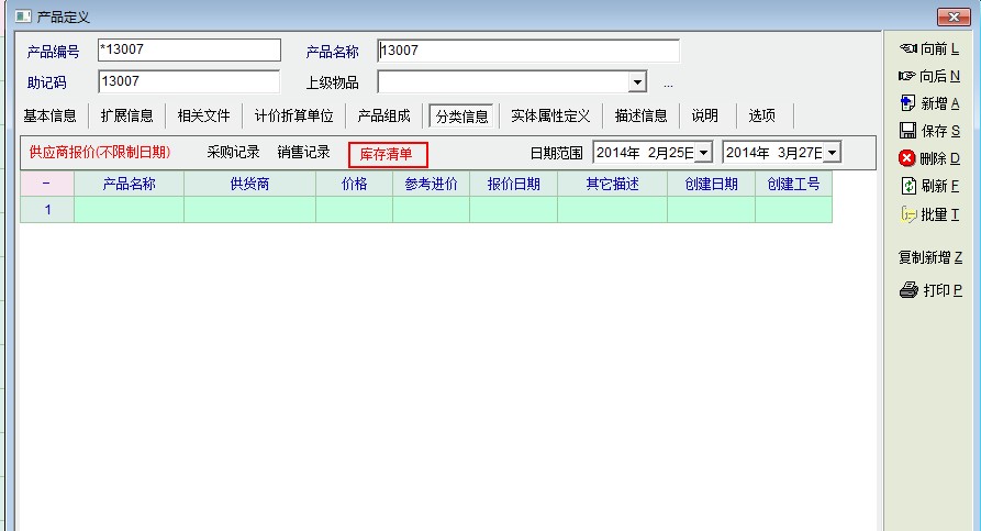 如图,建议在产品定义中的分类信息中增加查询该产品库存明细的功能