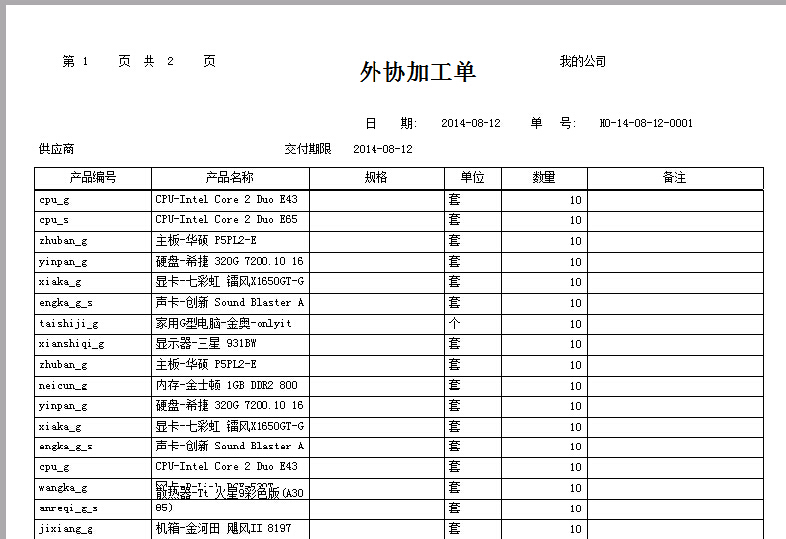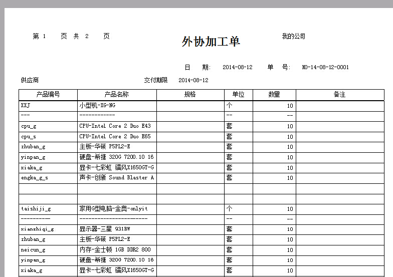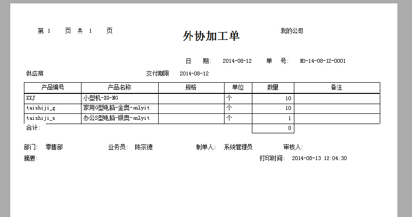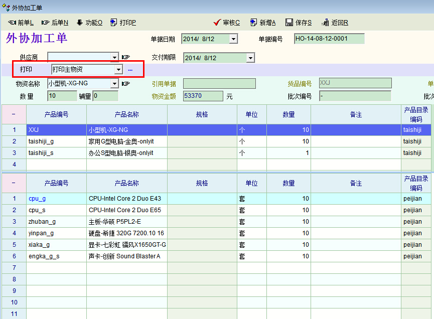 我们根据不同的外加工商有不同的情况。有时候只需要打印主物资,有时候只需要打印明细物资。