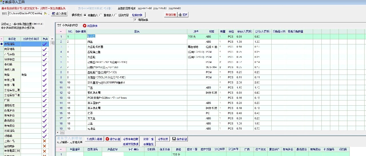 有关于产品信息输入的教程吗, 我导入原来的BOM, 好像没什么反应