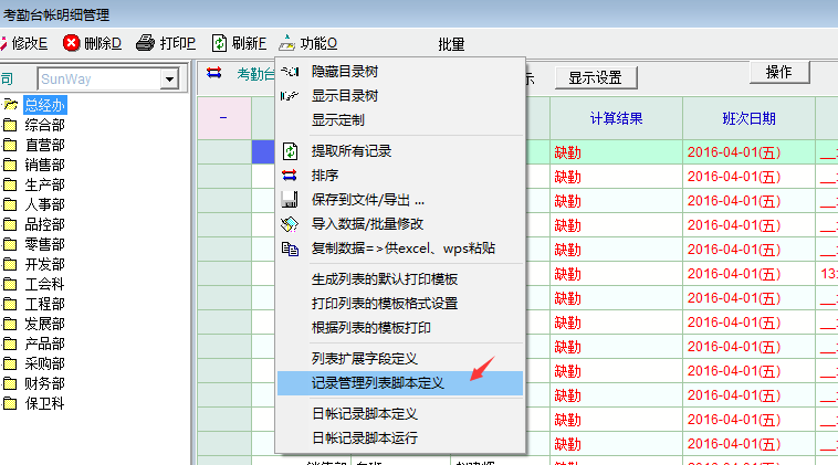 1.打开"考勤台帐明细管理"