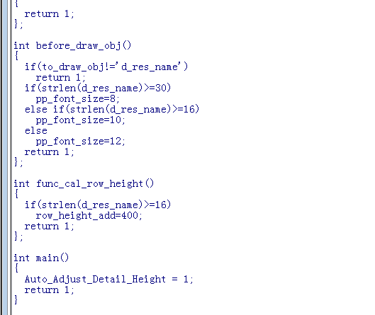 怎么把根据打印的长度内容设置自动调整行高度,字体大小等?复制下来的脚本需要改,不会弄