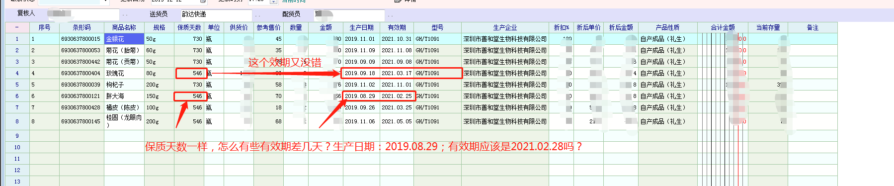 保质天数一样,算出的有效期有些会差几天,有些就刚好?这是什么原因呢?难道是计算值有误吗?我的计算值是这样的:fmt_date(date_add(std_inp_date(produce_date), quality_days),"yyyy.mm.dd")