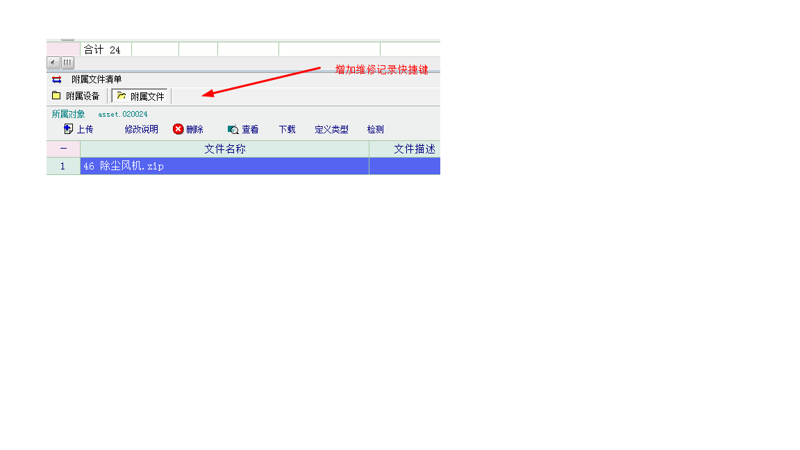 建议资产卡片下面的增加维修记录清单(即在附属设备、附属文件后面增加维修记录清单)