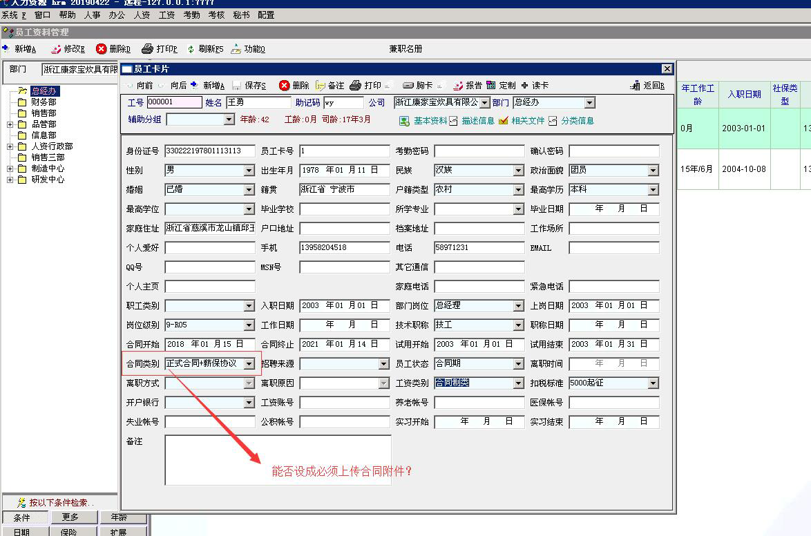 求助_人事模块中的合同选项选择后上传合同附件为必填项,工资标准那需要加上上传附件的功能_人力资产