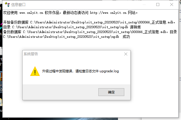 打开软件 登录,提示升级数据库,但是跳失败了。。如图