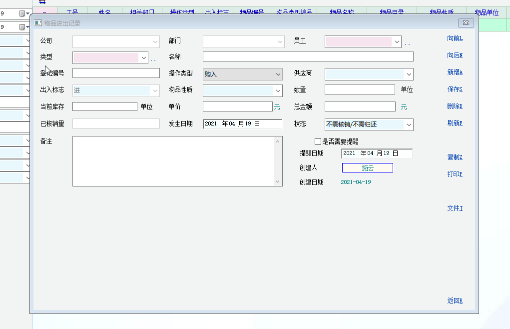 物品管理,领用与购买 修改成 类似 入库单以及出库单 类似。