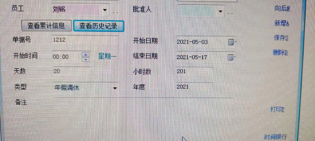 新增休假,出差记录时,天数,时间不能自动计算。手工输入的时间也不能判断是否准确