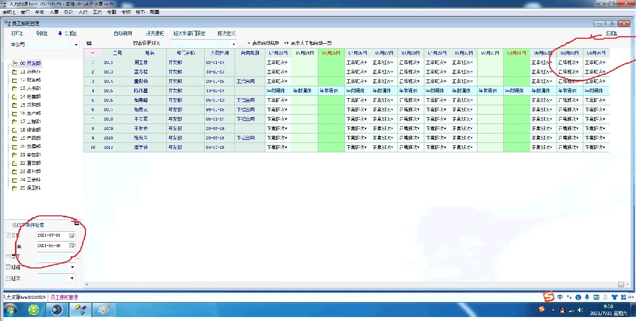 1,调休记录员工清单表,里面不能显示跨月份休假的人,例如我检索7.1-7.30休假的人,如果有6.25-7.15休假的人检索不出来