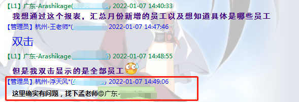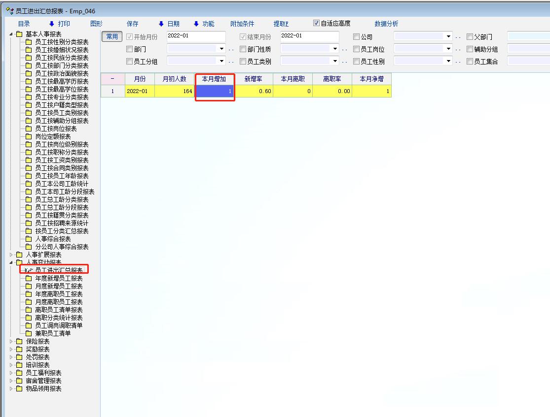 综合报表-人事变动报表-员工进出汇总报表,里面的本月新增和本月离职这两个方格,双击点进去,不能有效查看对应的信息,这两个栏目的代码能否完善一下,新增的员工我只能看到一个数字,想查看具体是哪几个人,点进去根本找不到(或者你说用筛选就完事,其他报表里面的方格数字是双击就能查看,都不用这么复杂,同步一下功能应该不难的吧),如果系统开发人员觉得这个不属于缺陷或者这属于无事找事的话,麻烦告知一下,同样的问题在这里或者群里问三次就没意思了