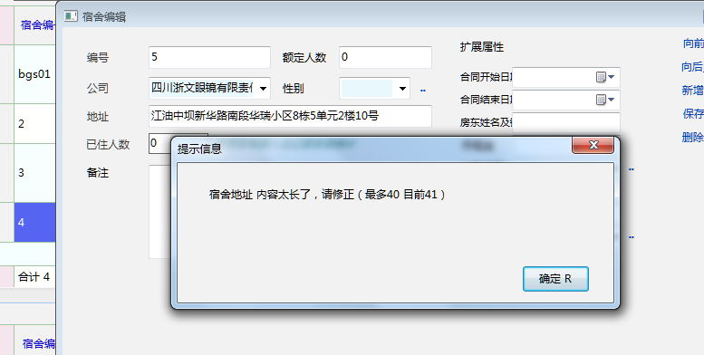 宿舍管理里面地址字符不够,希望再增加一些!