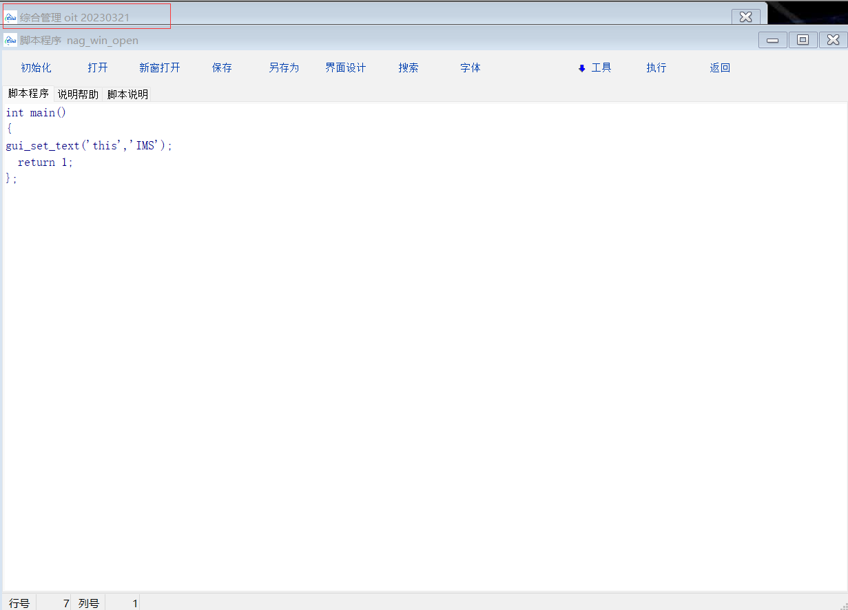 导航窗口定义了脚本,可屏蔽不了导航窗口上方的文字加版本号,点击执行后可以更改,可再次登入又回来默认的文字加版本号,请问单机版怎么修改红色框体内的文字,谢谢