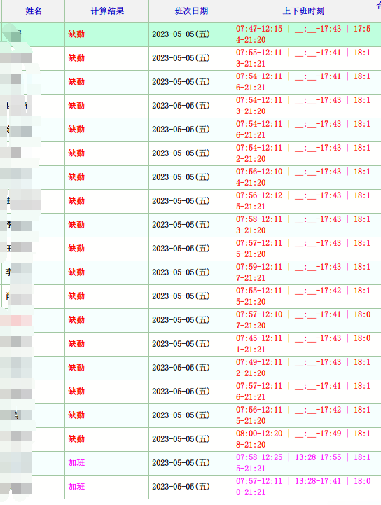 这样还要逐个去做缺勤记录,还不如直接逐个补打卡申请。而且缺勤记录是按天记录的,上面的人员只是漏打卡,并不是整天缺勤。