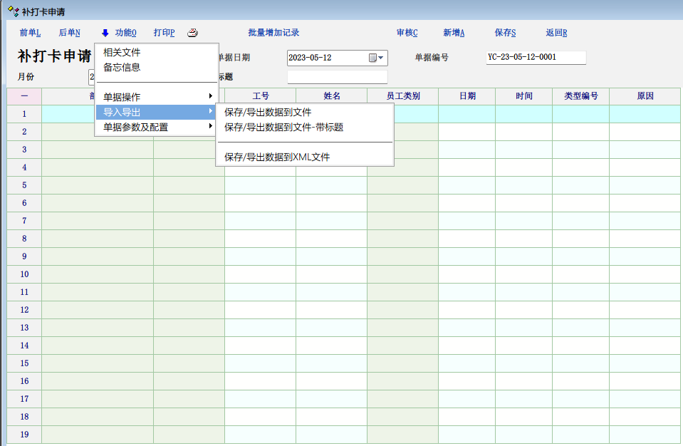 2、补打卡申请支持excel导入功能。