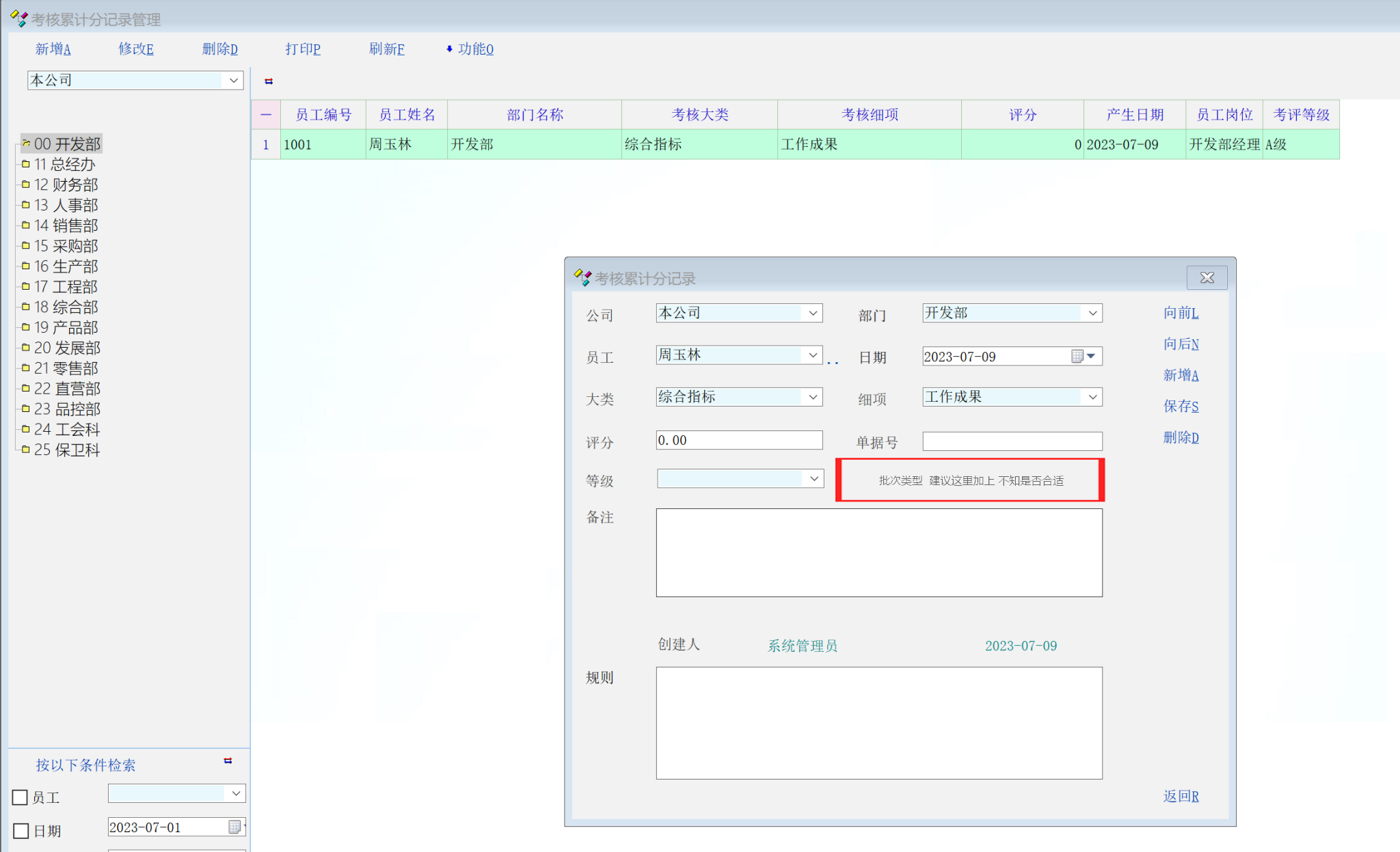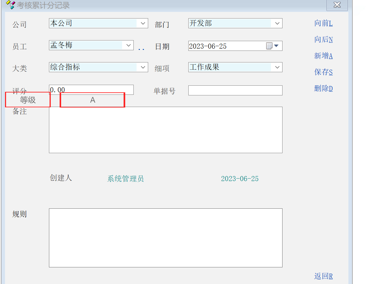 建议绩效考核增加等级字段,以方便实际绩效考核工作管理的需要!