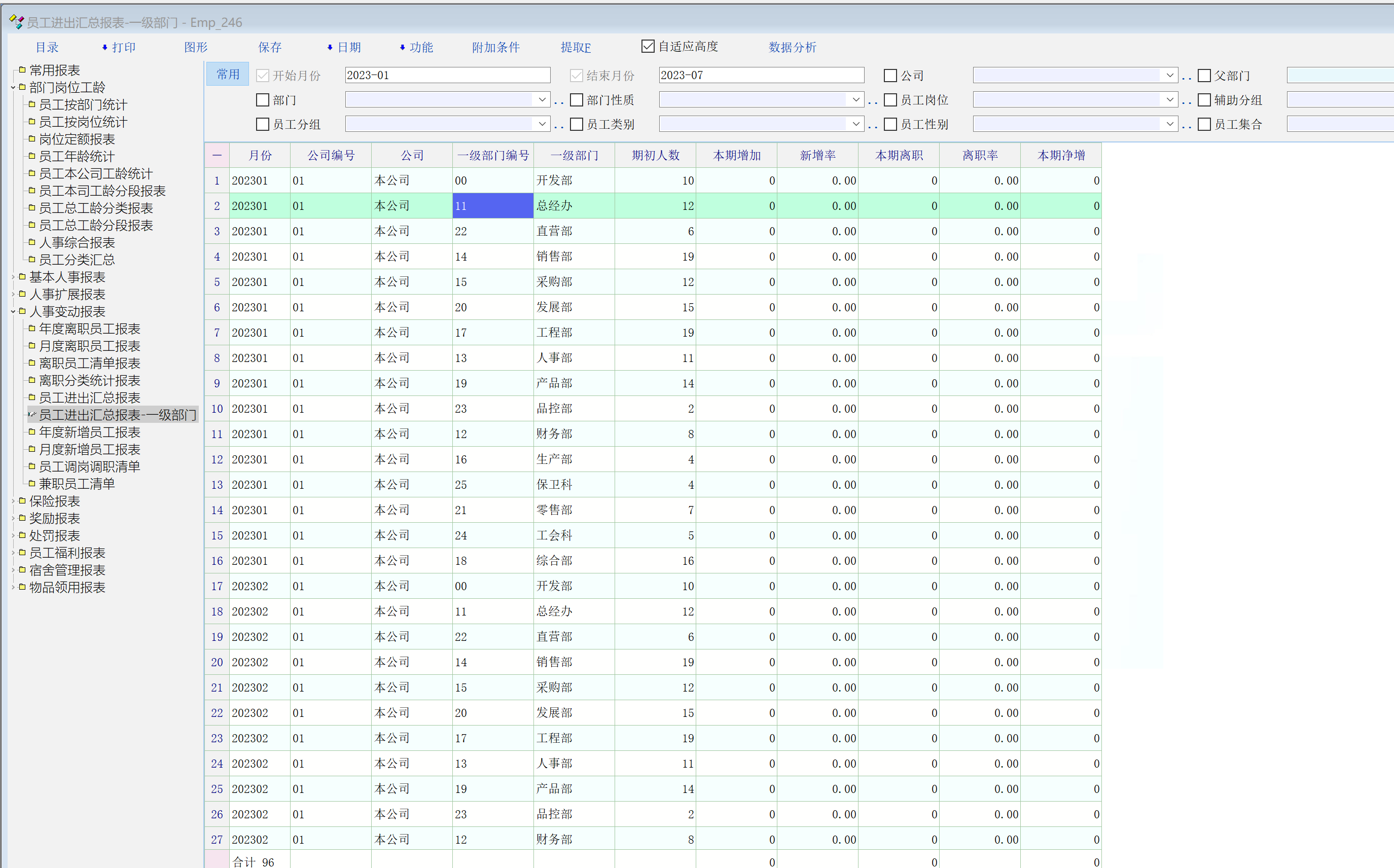 二级部门员工进出情况不能体现,建议按照常用报表中的  员工按部门样式进行优化  这样二级部门和一级部门的员工进出就会一目了然!谢谢