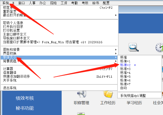 点击系统界面左上角---系统-----找下调整字体大小
