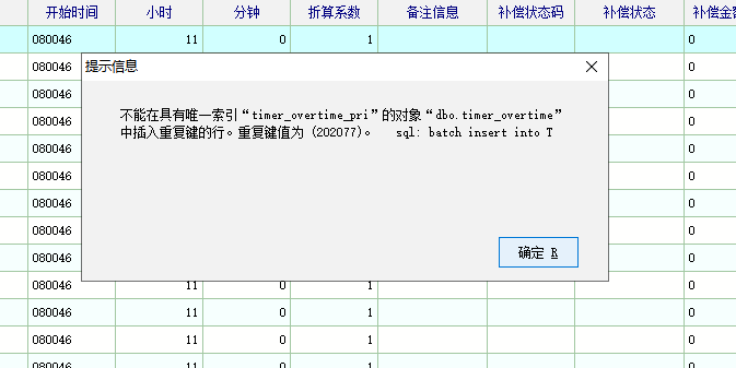 求助_加班申请单审核隔段时间就提示“不能在具有唯一索引 timer_overtime_pri 的对象 dbo.t_人力资产