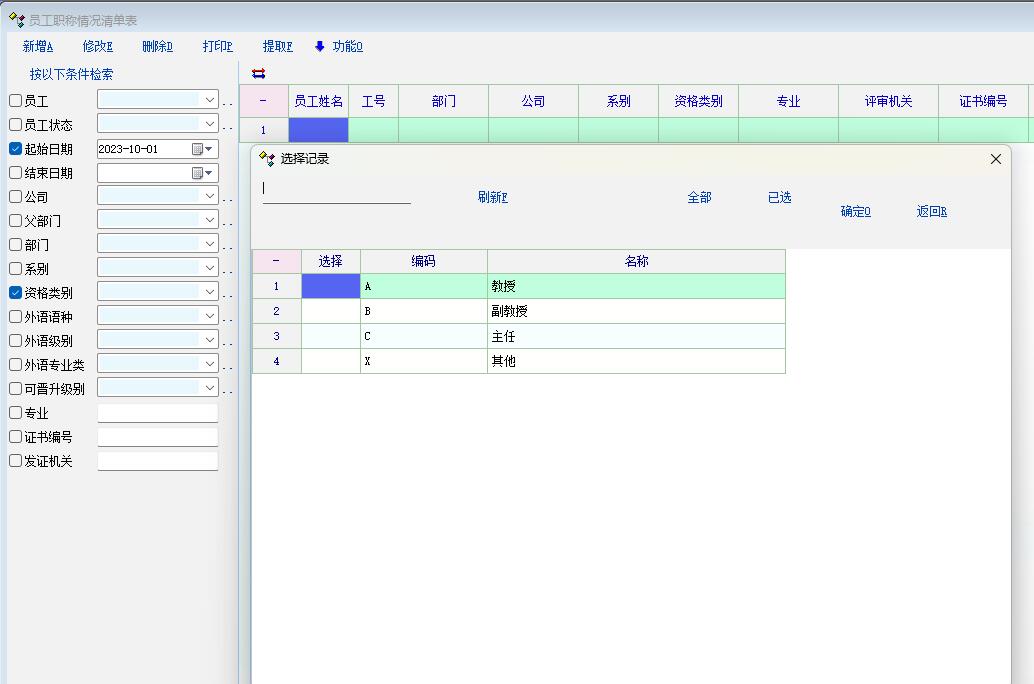在人事资料项目中的员工资料这一项目打开后,左侧的“按以下条件检索“下的项目打开后可以多选,其他的工作经历、学习经历、社会关系、职称管理等项目打开后,左侧的“按以下条件检索“下的项目打开后可以不能多选,希望能增加多选。其他大项像考核、考勤里面的检索功能也有部分存在不能多选的情况,希望都能加上