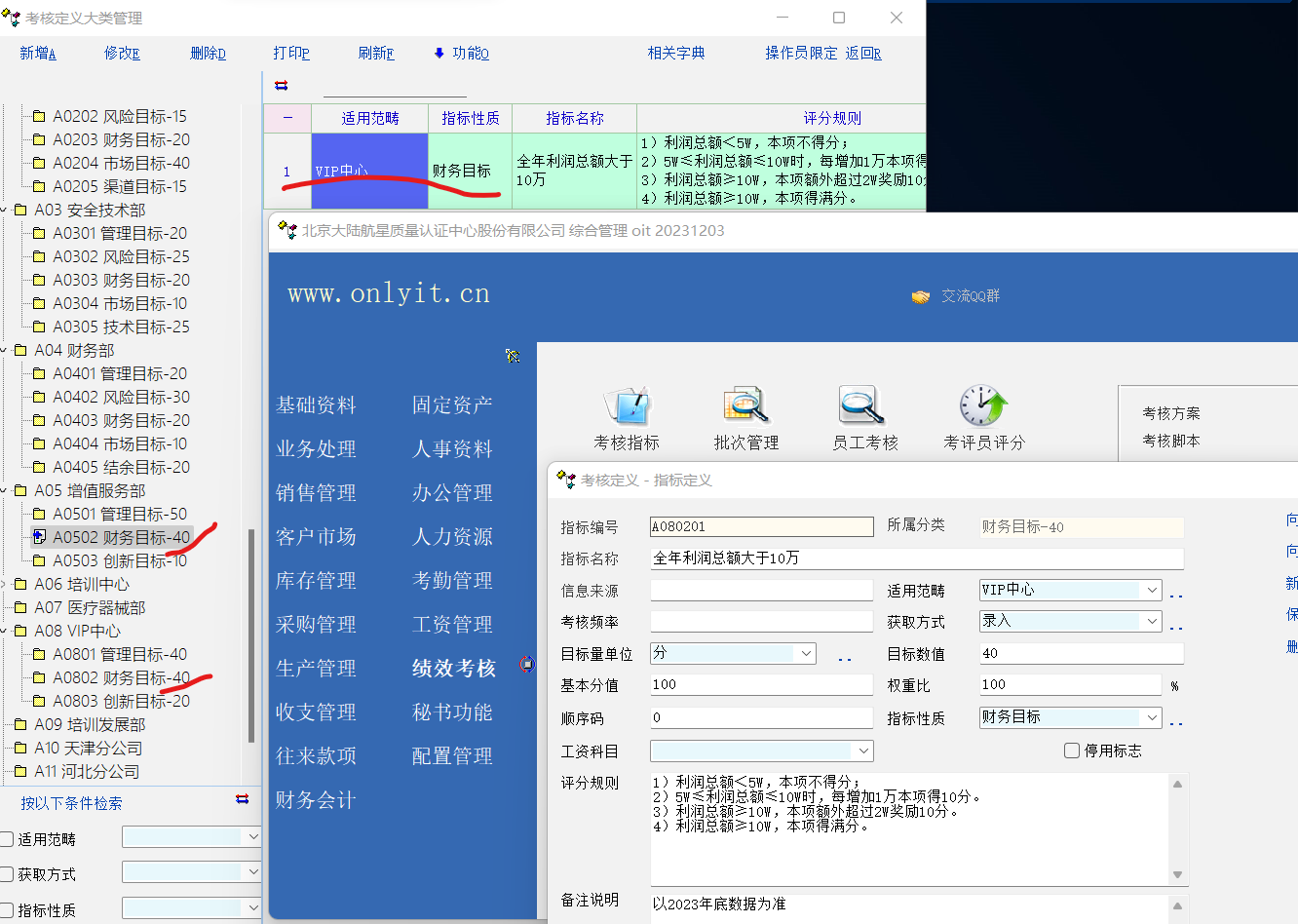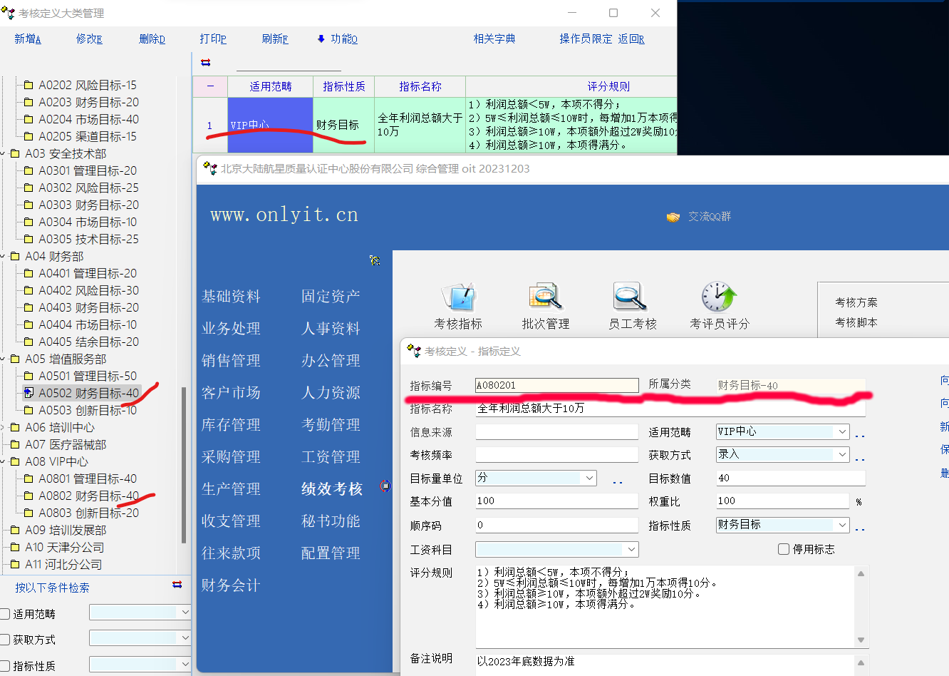您好!我的表述不准。我的意思是“VIP中心”的细项不受编号的约束,只受“所属分类”约束。所以“VIP中心”的“财务目标-40”在“增值服务部”的“财务目标-40”中呈现了,数据也就乱了。