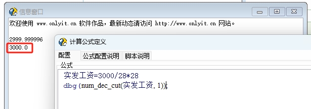 实发金额=出勤天数*基本工资/28; 这个对于28天3000元的问题可以解决,但是稍微复杂的计算,结果还是去掉了小数点数字,并由没四舍五入