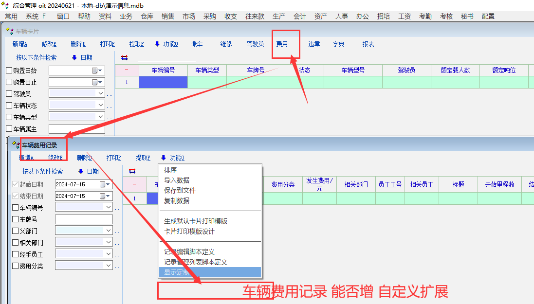 车辆管理-费用管理-增加扩展属性