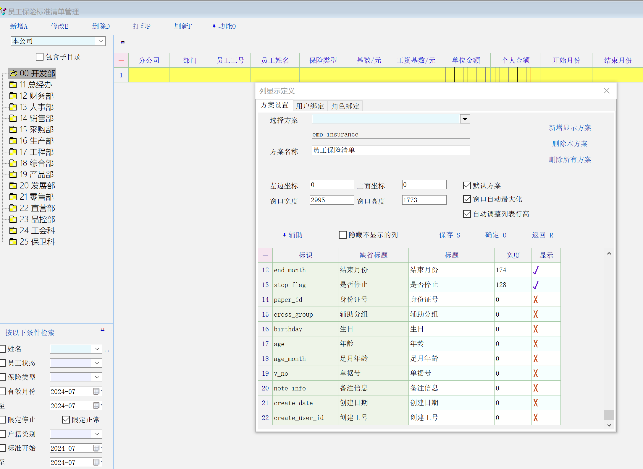 建议在员工保险清单信息中增加员工资料中的社保账号信息!通过显示定制进行管理!
