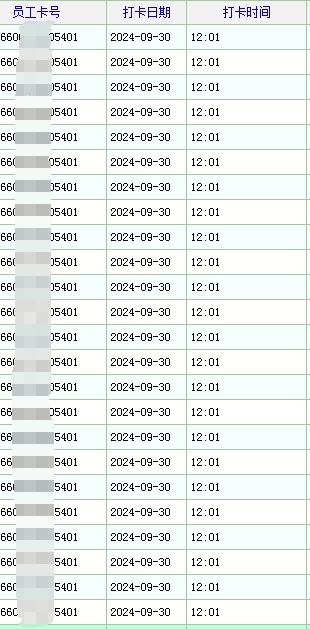卡号没有重复,而且不是一个人这样,所有人都是,不到100人每个月有2、30万条考勤记录。
