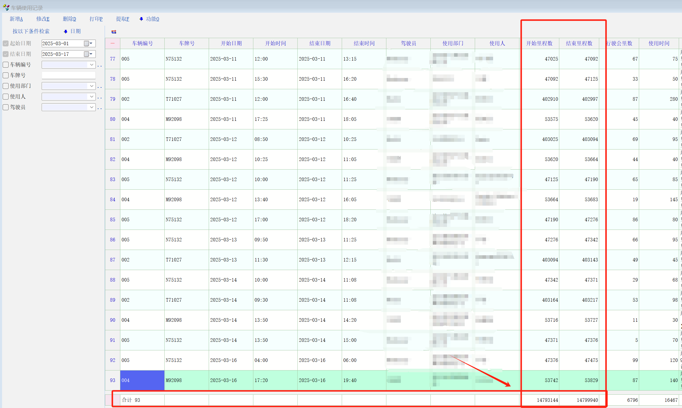 建议取消“开始里程数”和‘结束里程数’还有图片后面“单价”的总额的合计,这个合计好像没有实际意义。