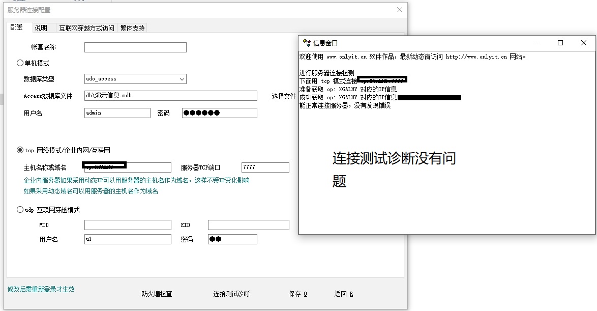 刚下载的压缩包解压缩后,可以打开客户端,通过动态域名连接(其它客户端都如此),填写准确的域名后,防火墙检测没有问题,连接测试诊断没有问题,但保存重启后就没有反应了,进程显示客户端正在运行,但迟迟没有反应,可能过1小时左右客户端配置界面会弹出,并显示无法连接服务器,请问这个问题如何解决。