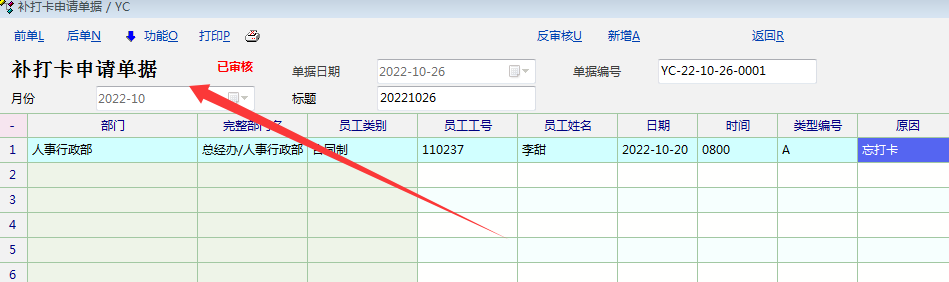在考勤模块里面,使用了补卡单据补卡,发现补卡后,还要再去找到这个人的数据,再进行处理,如果多人补卡,不同日期、时间段,数据处理起来,就非常不便了;
