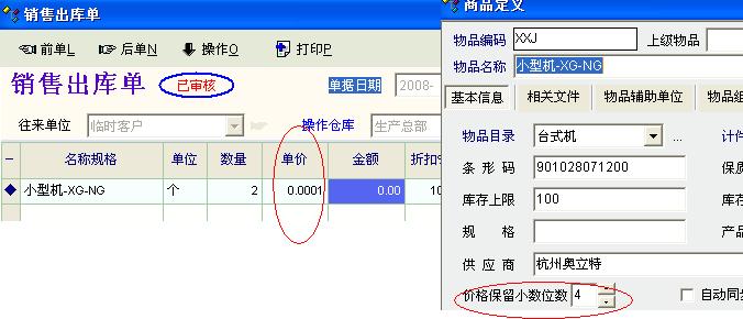 请问下斑竹,进销存软件我用了以后怎么那个销售出库里面单价的有效数字只有3位,我做的是标准件生意的,很多价格只有0.00几元,4舍5入的话很多情况下在销售出库的时候就显示0,这个问题怎么解决?