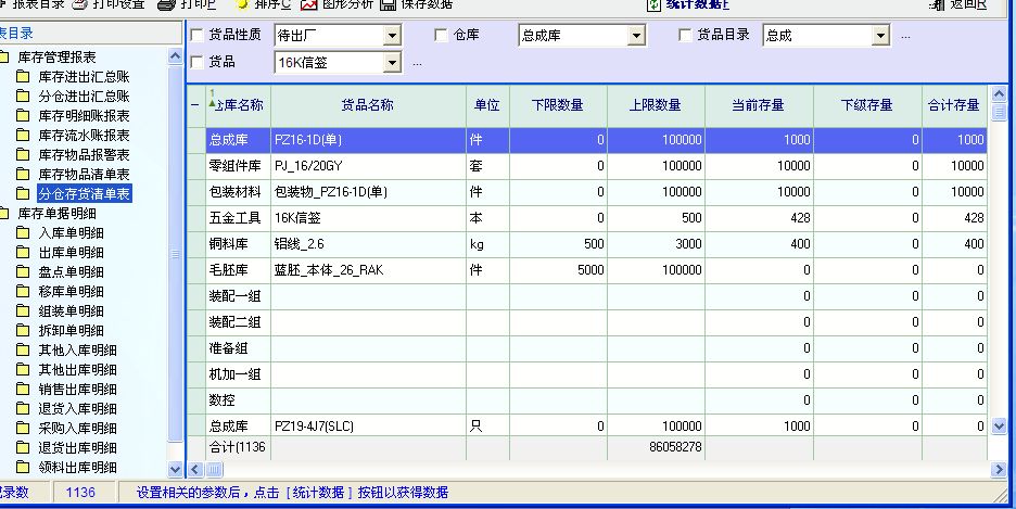1、库存报表的分仓存货清单表中,我没有限制仓库(未打钩选),想来软件应自动分仓。但总成库为什么有少数货品被排在外面?如截图01中的第一行、第12行、截图02中的第3行。我检查了我的仓库编号、产品目录、性质编号都没错。