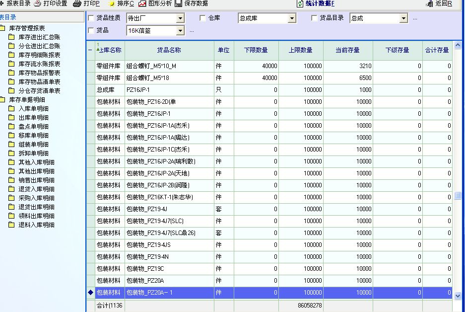 ①建议每种“报表”都增加物资数量的合计项,对总成产品和选择的零组件是很有必要的。