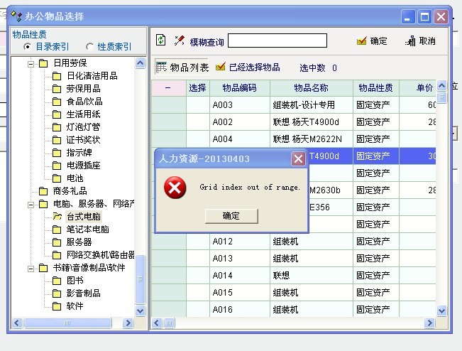 各位老师好。我在使用物品发放的时候系统出现了闪退情况。闪退是在我点选物品是出现闪退,还有一种情况是报错,如图,请问各位老师是怎么回事~谢谢
